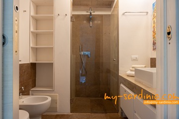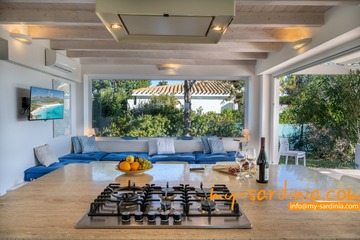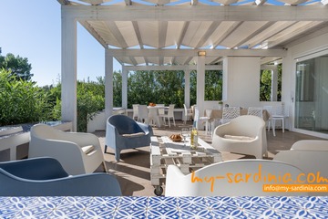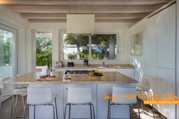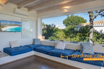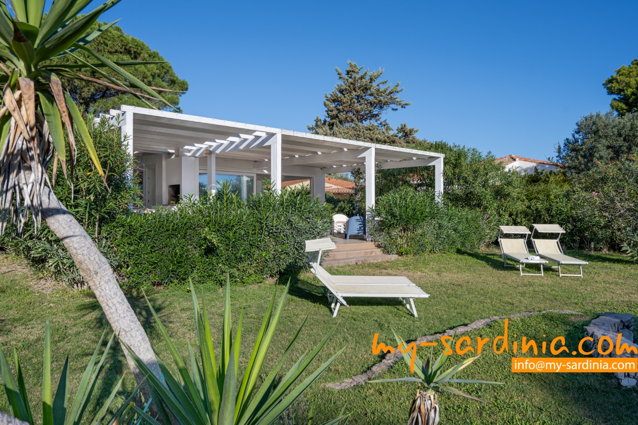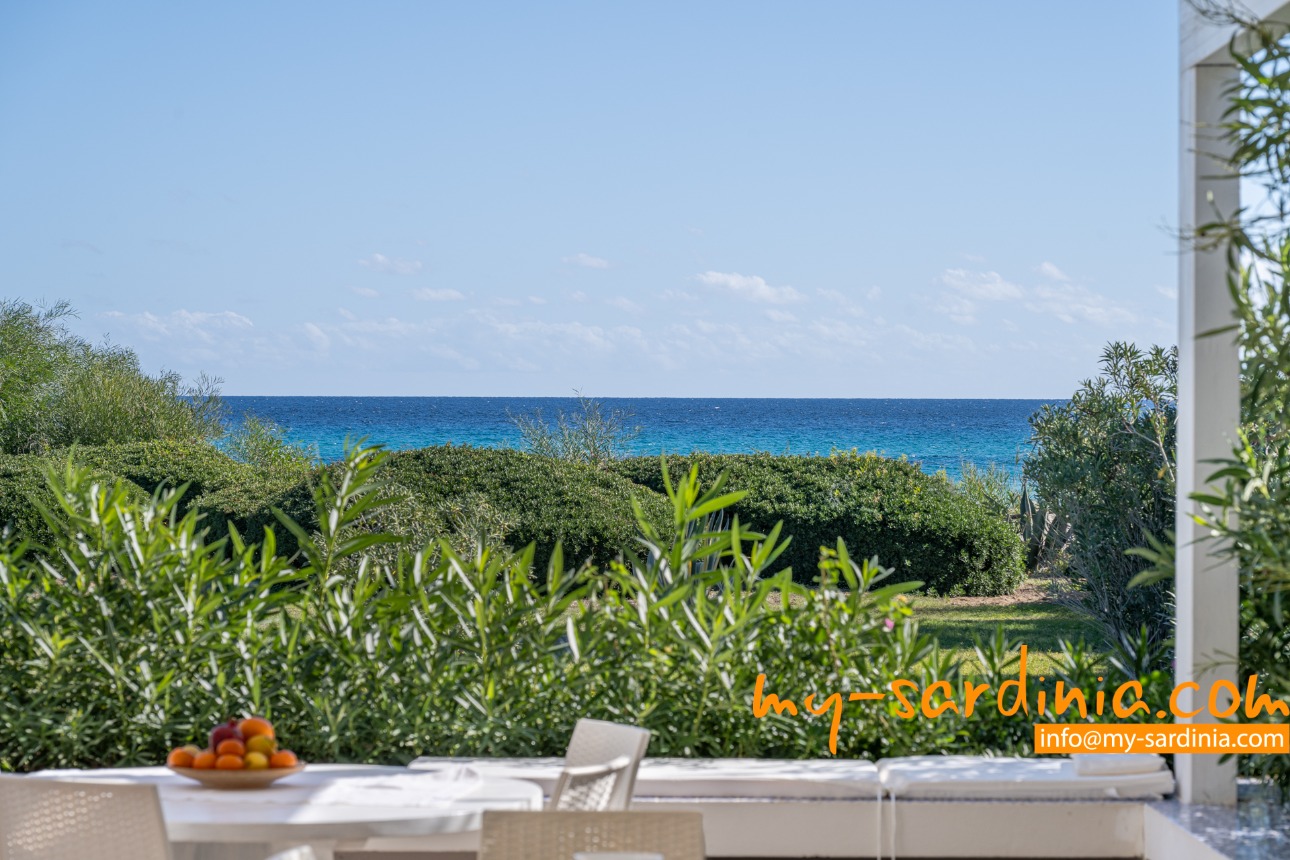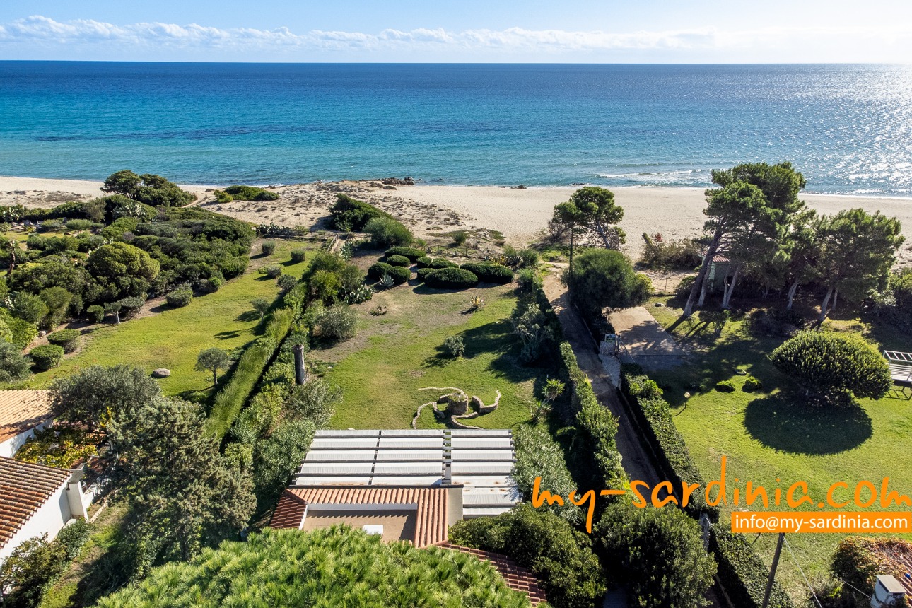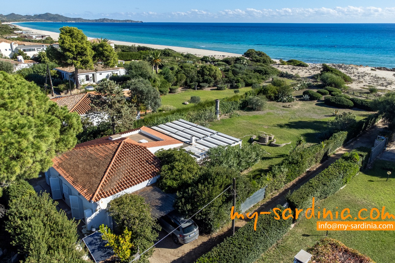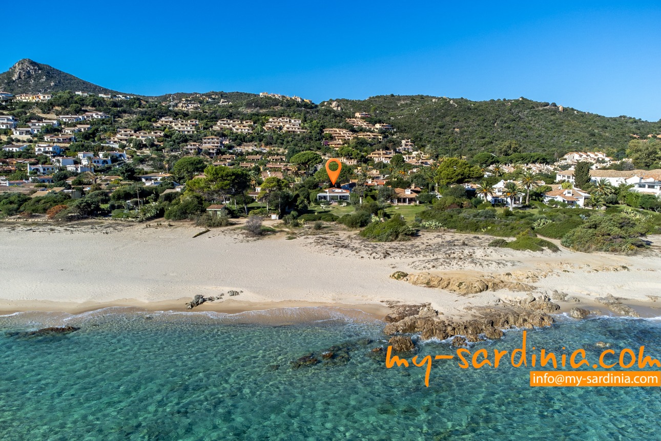 Villa Amare liegt in der ersten Reihe direkt am Meer. Vom Garten der Villa gehen Sie ein paar Schritte vorbei an Macchiagebüsch und schon stehen Sie am herrlichen Sandstrand der Costa Rei. Das Meer am Ufer ist seicht und die Lage des Hauses ist besonders für Familien mit Kindern ideal. Zwei vorgelagerte Felsen laden zum Tauchen und zum Schnorcheln ein. Der Sand ist weiß und feinkörnig.