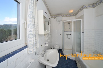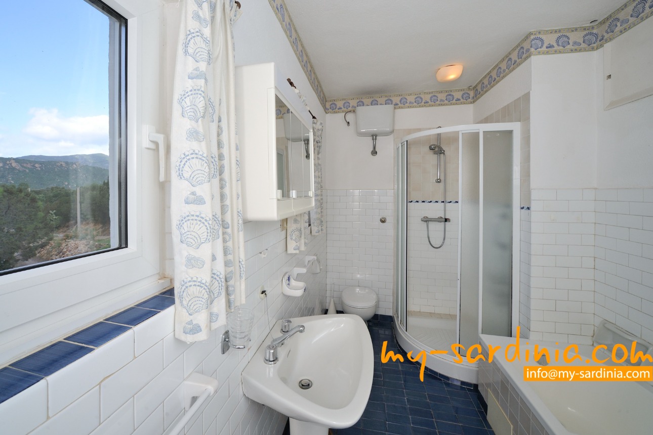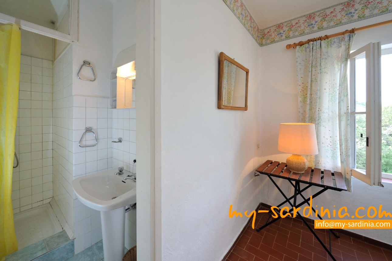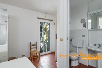 Das erste Schlafzimmer liegt im Obergeschoss und hat ein Doppelbett sowie einen kleinen Balkon mit direktem Blick auf den Strand – ein Anblick, der den Tag schon beim Aufwachen einzigartig macht. Das dazugehörige Bad bietet sowohl Dusche als auch Badewanne. Das zweite Schlafzimmer mit zwei Einzelbetten und das dritte, 2019 neu gebaute Doppelzimmer mit eigenem Gartenausgang verfügen jeweils über ein eigenes Ensuite-Bad, so dass alle drei Schlafbereiche für sich stehen. Eine Klimaanlage hat Villa Bau Cannas nicht, aber durch die Lage über dem Strand sorgt oft eine sanfte Brise für Abkühlung.
