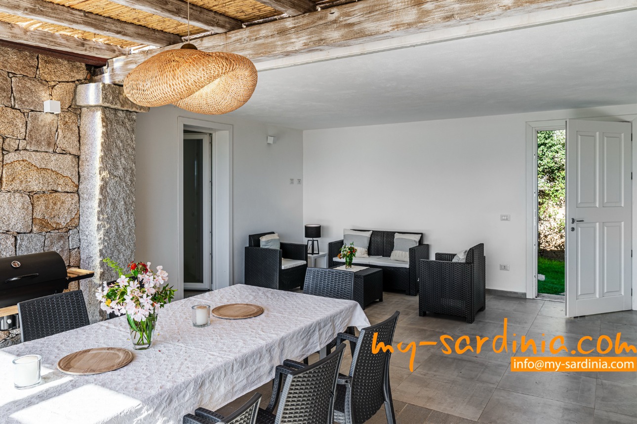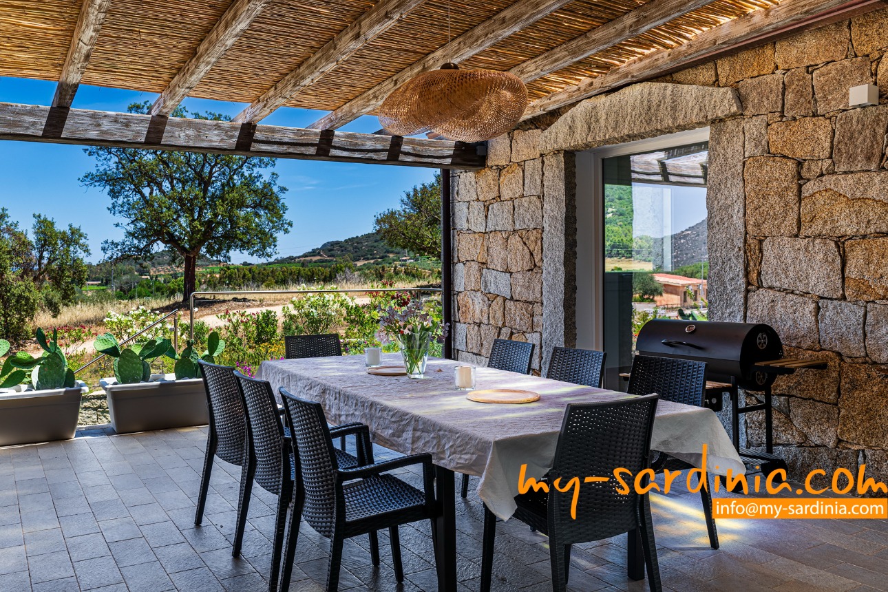 The unmistakable highlight of the villa, apart from the private pool, is the covered terrace with views of the sea and the hilly landscape. The private garden with brick barbecue is ideal for barbecues with family or friends. Here you can grill fresh fish or other Sardinian delicacies to your heart´s content - for an incomparable ‘outdoor feeling’ on holiday.