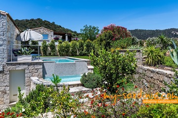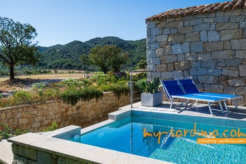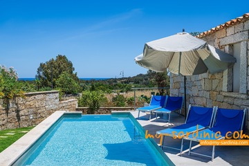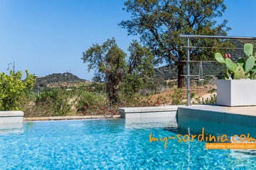 Villa Is Laccus 6 is a modern, new holiday villa with a private pool overlooking the hills and sea - architecturally exceptional, built in the old Sardinian style. Enjoy evenings with a view of the rolling hills and a pure Sardinian lifestyle. The sandy beach of the bay of Cala Sinzias, one of the most beautiful beaches in Sardinia, is just 2.4 km away. Villasimius, a summer resort for a sophisticated clientele, is an authentic Sardinian village just 15 minutes away by car.
