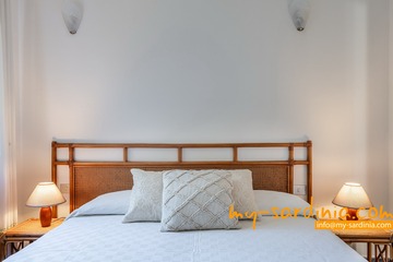 Villa Levante has 3 bedrooms for up to 6 people: two bedrooms are each equipped with a double bed, and in the third bedroom the beds can be arranged as either two single beds or a double bed.
