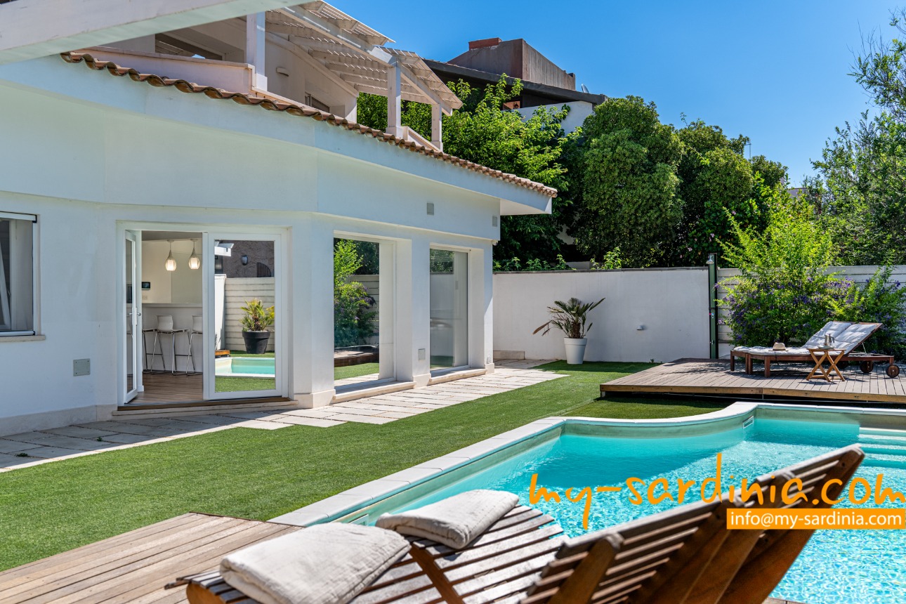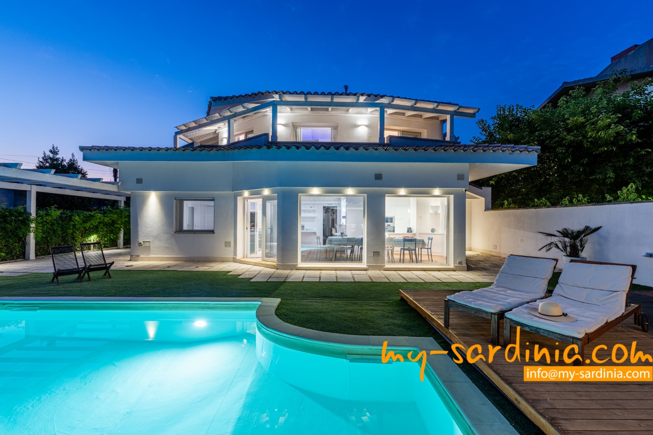 Villa Porta liegt direkt am „Poetto“, dem 8 Kilometer langen Sandstrand der Inselhauptstadt Cagliari. Vom Garten der Villa führt ein kleines Tor auf den weichen, goldenen Sand und so bleibt Ihnen nur die Qual der Wahl, ob Sie im eigenen Pool der Villa oder im türkisfarbenen Wasser des wunderschönen Strandes baden möchten. Dazu bietet Villa Porta alle Annehmlichkeiten des nahen Stadtlebens wie Restaurants, Bars und Supermärkte in der Umgebung sowie eine strategisch ideale Lage um den gesamten Süden Sardiniens zu erkunden.