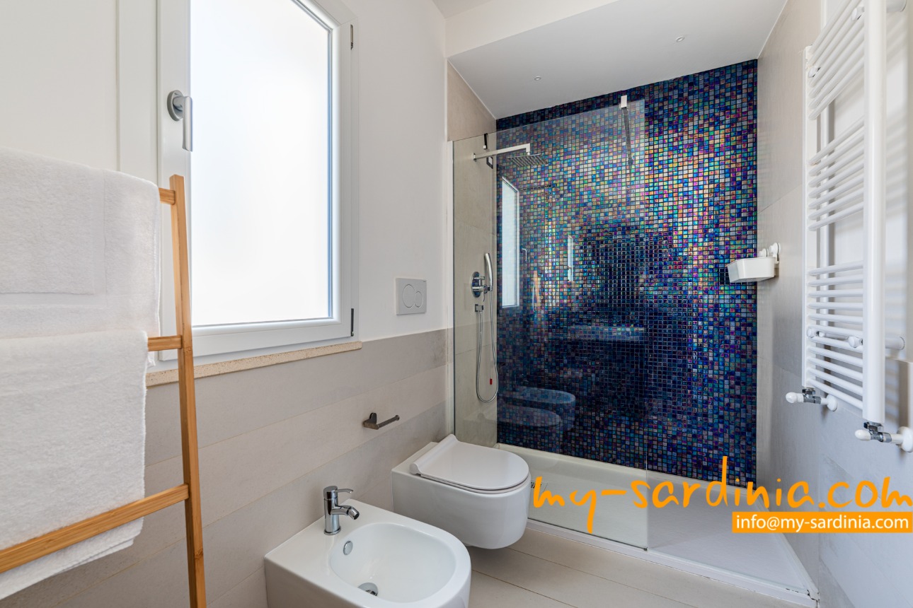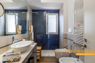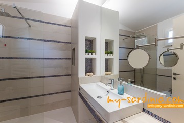 Jedes der 5 Schlafzimmer der Villa verfügt über ein eigenes, modernes Duschbad. Maritime Design-Elemente bilden das passende Ambiente einer echten Strandvilla und die Klimaanlage sorgt für angenehme Temperaturen. Ein schnelles WLAN ist vorhanden.