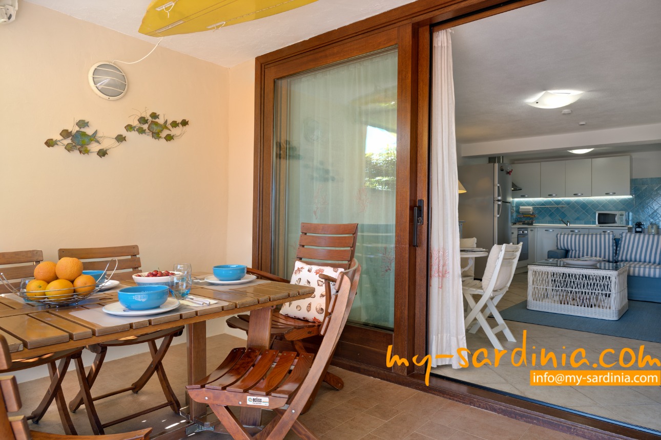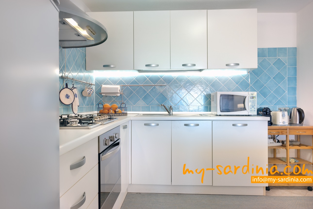 The Casa Le Conchiglie flat is located on the ground floor of a terraced house and is very tastefully furnished - with pictures of sailing boats, decorative objects made of shells and atmospheric colours reminiscent of sun, sand and waves. The open-plan living and dining area flows into an open-plan kitchen area, ideal for uncomplicated holiday living. There is another flat on the second floor of this terraced house, which is rented out separately and has its own access from the other side of the building.