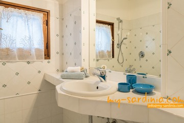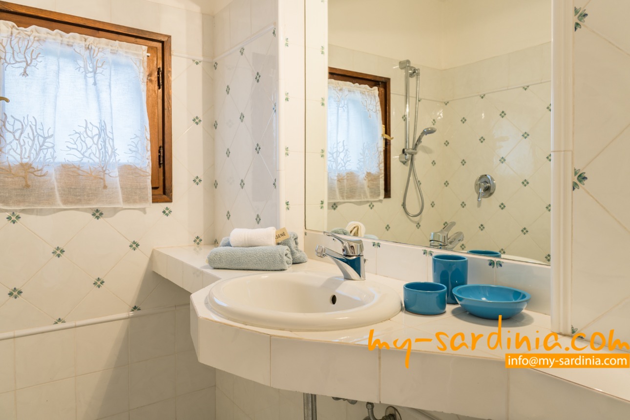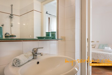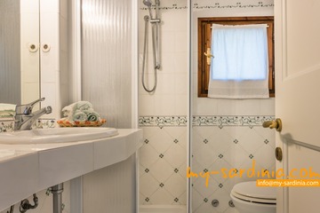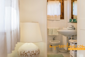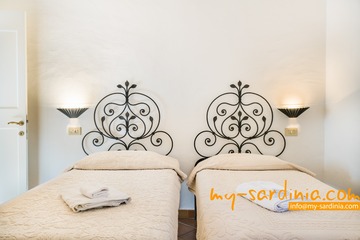 Lu Postu Mimosa has 4 bedrooms. The two double bedrooms each have their own bathroom with shower. In the third bedroom there are two single beds and in the 4 bedroom there is a french bed (width 1.40m). The third bathroom, with shower, is accessible from the hallway.