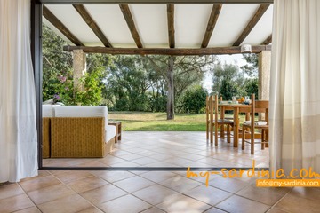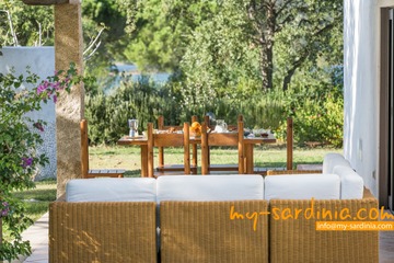 Villa Lu Postu Mimosa is located on the 12-hectare park-like estate of Lu Postu, an oasis of tranquillity with only 9 villas. Lu Postu is located directly on the bay of Arzachena, which winds like a fjord into the famous coastal landscape of the Costa Smeralda. No less than two sandy beaches border the property: one at the end of the bay in front of a natural marshland and only about 120 metres from Villa Lu Postu Mimosa. This is one of the very few beaches in Sardinia where dogs are allowed even during the season - this is generally prohibited on Sardinian beaches. Therefore, Villa Lu Postu Mimosa is also ideal for travelling with a dog.