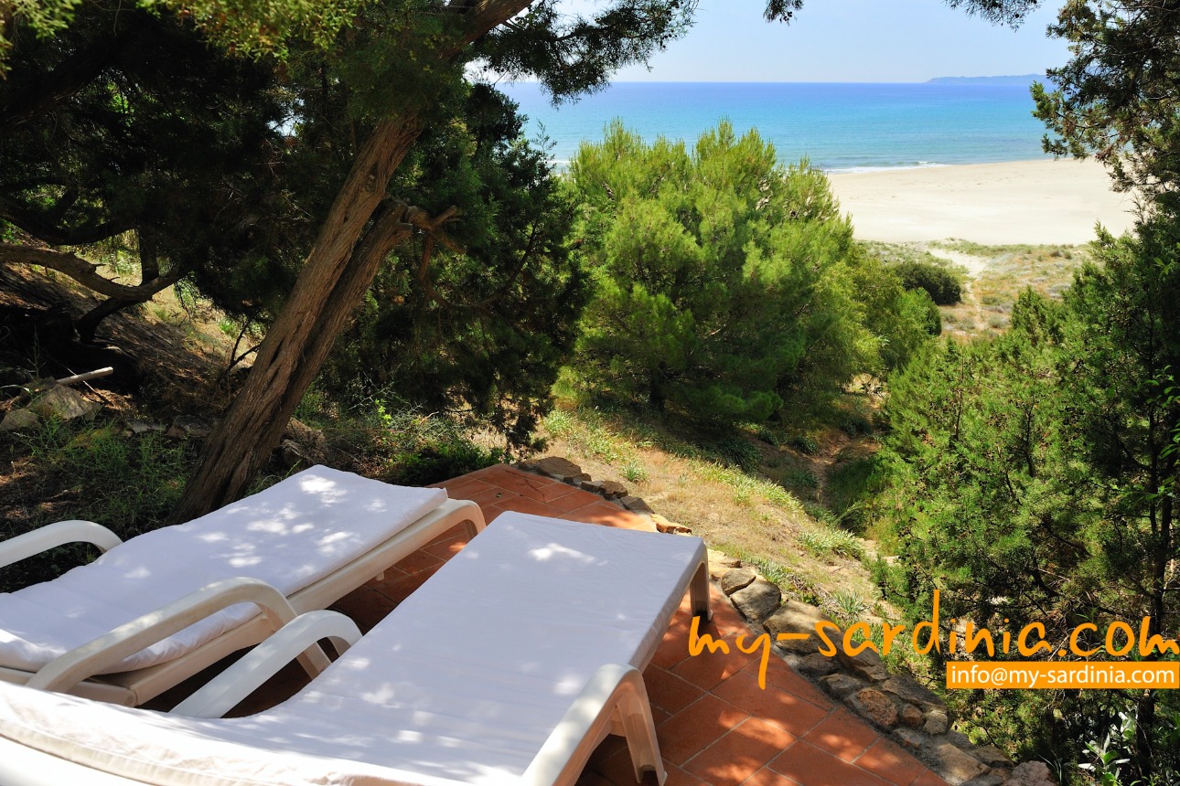 Torre Salinas beach is just under 75 metres away; simply walk down the dune: fine, light-coloured sand, clear water and a tranquillity that is rarely disturbed, even in summer. The coastline between Torre Salinas and Capo Ferrato to the north offers a number of other beautiful beaches, including the several-kilometre-long sandy beach at Feraxi, just a few minutes’ drive away. The Costa Rei, with its kilometre-long sandy beach, is about a 15-minute drive away.