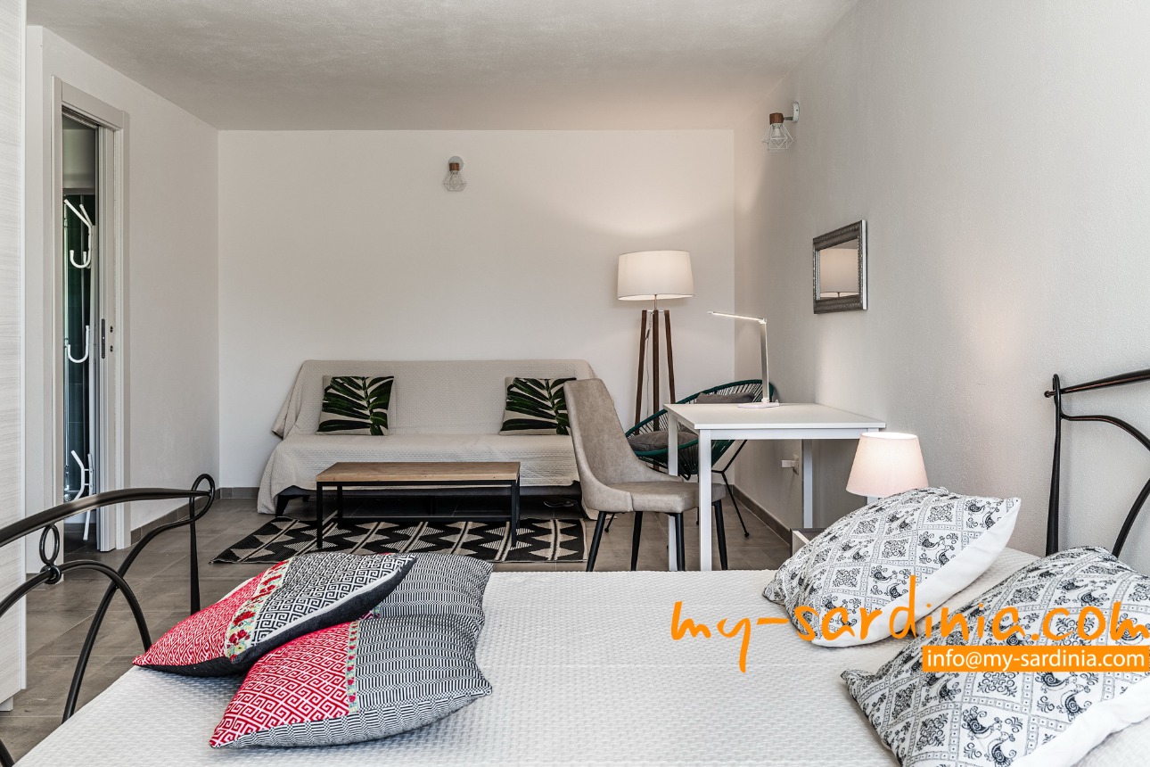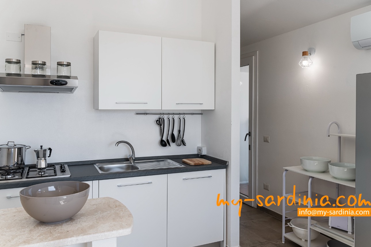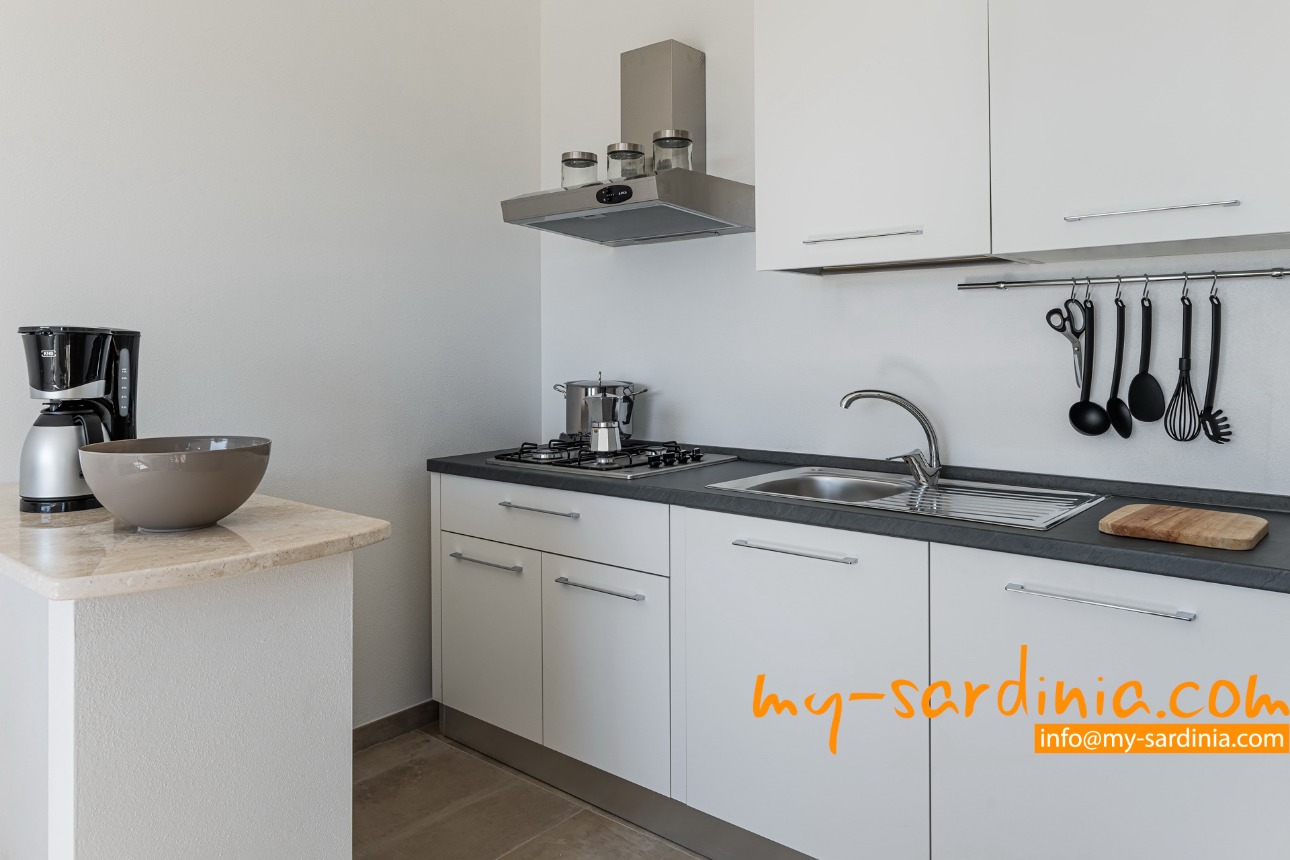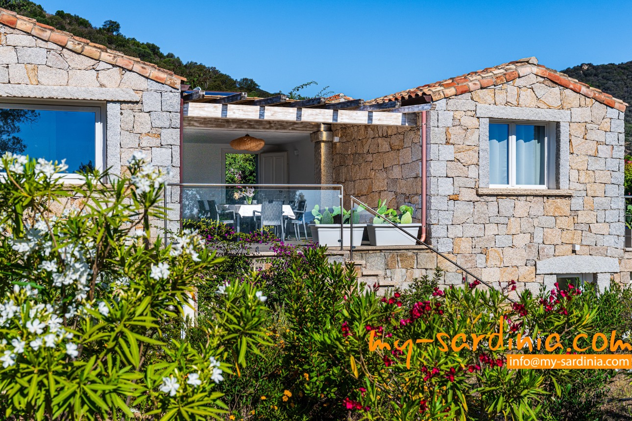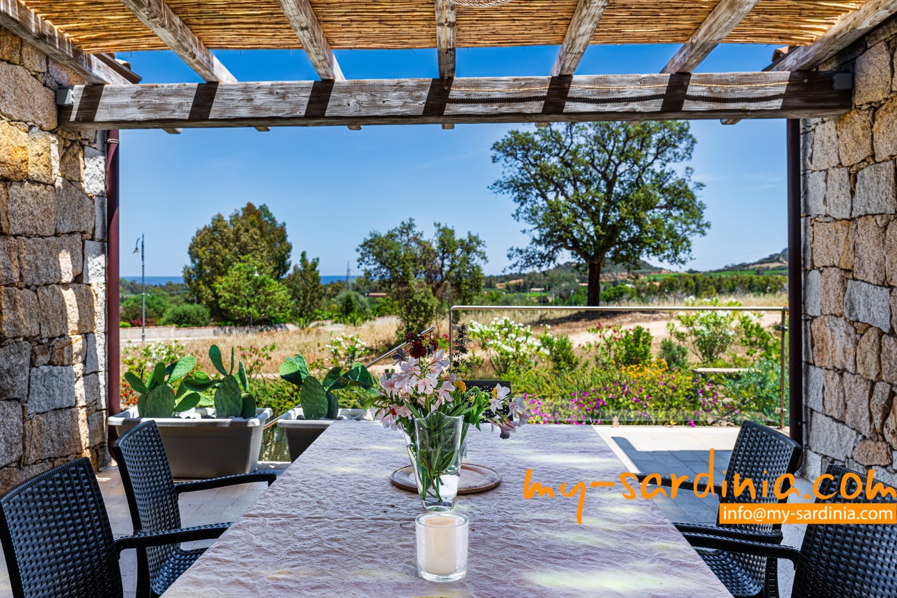 The unmistakable highlight of the villa, apart from the private pool, is the covered terrace with views of the sea and the hilly landscape. The private garden with brick barbecue is ideal for barbecues with family or friends. Here you can grill fresh fish or other Sardinian delicacies to your heart´s content - for an incomparable ‘outdoor feeling’ on holiday.
