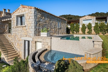 Villa Is Laccus 6 is a modern, new holiday villa with a private pool overlooking the hills and sea - architecturally exceptional, built in the old Sardinian style. Enjoy evenings with a view of the rolling hills and a pure Sardinian lifestyle. The sandy beach of the bay of Cala Sinzias, one of the most beautiful beaches in Sardinia, is just 2.4 km away. Villasimius, a summer resort for a sophisticated clientele, is an authentic Sardinian village just 15 minutes away by car.