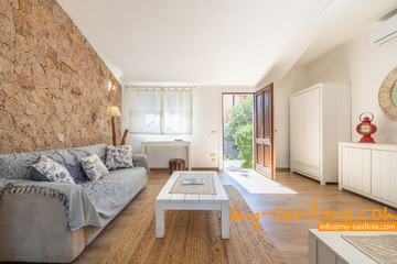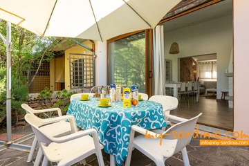 Villetta Agave is located in the quiet holiday resort of Baia delle Mimose near Badesi, surrounded by extensive sand dunes. The beautiful sandy beach of Baia delle Mimose is only about 200 metres from the house and can be easily reached on foot via a small path through the dunes. Nestled in greenery, between pine trees and shady paths, this single-storey holiday home combines the relaxed atmosphere of a classic beach residence with the comfort of modern, well-equipped accommodation.