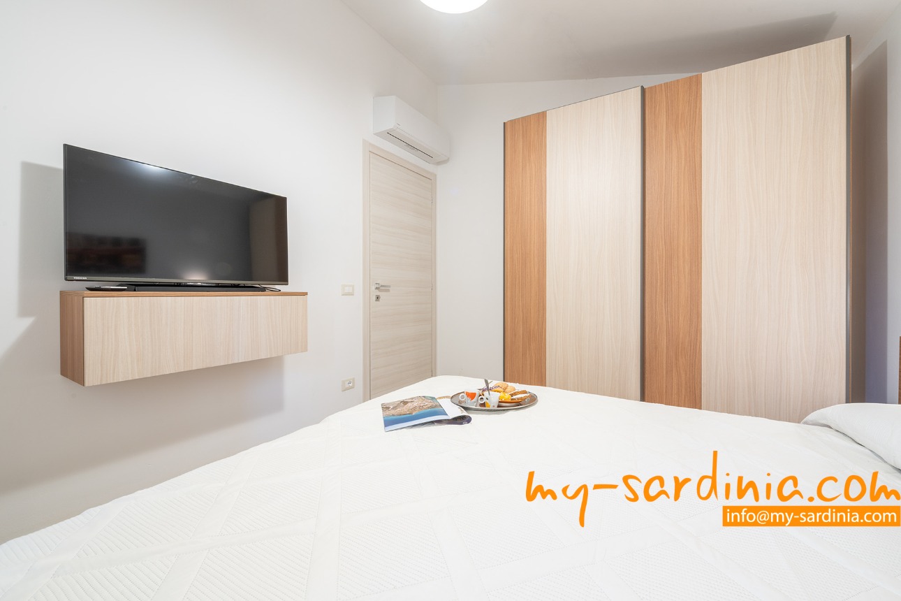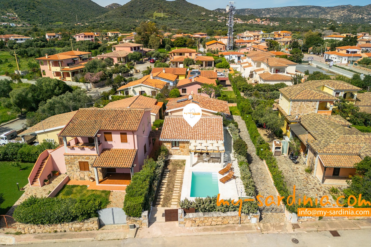 Villetta Meraviglia is a modern holiday home with a private pool. It is located on a quiet side street, just a few minutes´ walk from the lively centre of San Teodoro. Many bars, restaurants, shops and ice cream parlours characterise the typical summer hustle and bustle of the town. San Teodoro is famous for its three-kilometre-long sandy beach ‘La Cinta’, which is considered one of the most beautiful in Sardinia and is only 1.9 kilometres away from Villetta Meraviglia. Other beautiful bathing bays, such as Cala D´Ambra, which is about 2.5 kilometres away, or Isuledda beach, which is about 3.5 kilometres away, make Villetta Meraviglia an ideal starting point for varied beach days combined with the privacy of your own pool and the advantages of nearby village life.